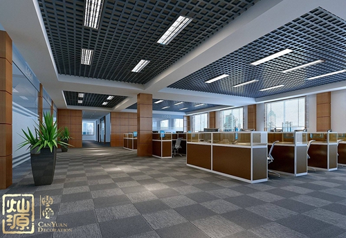 天花。現階段大部分辦公空間在天花上的用材都比較簡單,用石膏板和礦棉板或鋁扣板天花,進一步設計要求的辦公空間則采用一些造型和色彩大膽的天花設計。可在一些區域進行重點裝修即可。比如在會議室、接待室做石膏板造型天花,不是很重要的區域直接做礦棉板天花,不做造型處理。一般在一些設計公司或者廣告公司等設計元素較強的空間可以在天花吊頂上加裝一些個性化的裝飾圖案和裝飾品。