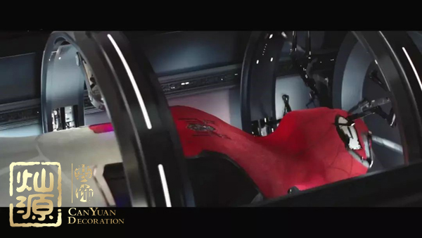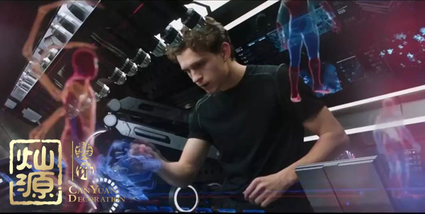 不過小編最好奇的還是鋼鐵俠給小蜘蛛留下的高科技工作室。預告片中不僅有高科技納米戰衣打印機,還有全息模擬設計系統,跟鋼鐵俠自己用的系統是大相徑庭,不過小編更相信這是托尼升級版的. 各種簡潔線條組合的高科技實驗室,更多的展現了機械的復雜性。圓形的門框和環形燈具還有充滿金屬光澤的合金墻壁裝飾無一不是未來感極強的元素。(不好意思,小編職業病又犯了)