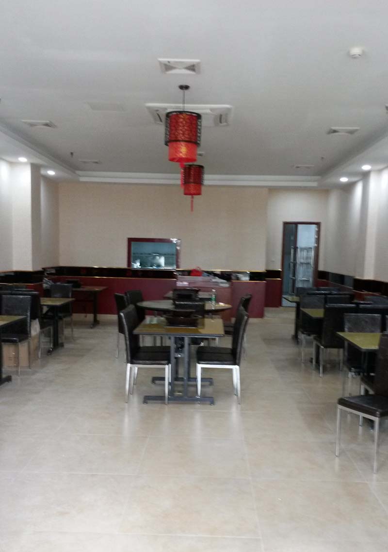 南寧餐廳裝修 看看餐桌,正中間是一張大型圓桌,兩邊分別有四排長方形的方桌,通道較大,來再多人也不會得擁擠;疱伒曷锞褪且獰狒[,所以我們裝修的時候特意將走廊留的空間較大,這樣方便消費(fèi)者坐著那里吃東西很自如。墻面整體裝飾采用軟裝飾,采用火鍋店的特色畫面進(jìn)行裝飾,讓人一看就有食欲,有種來了就不想走了的感覺。