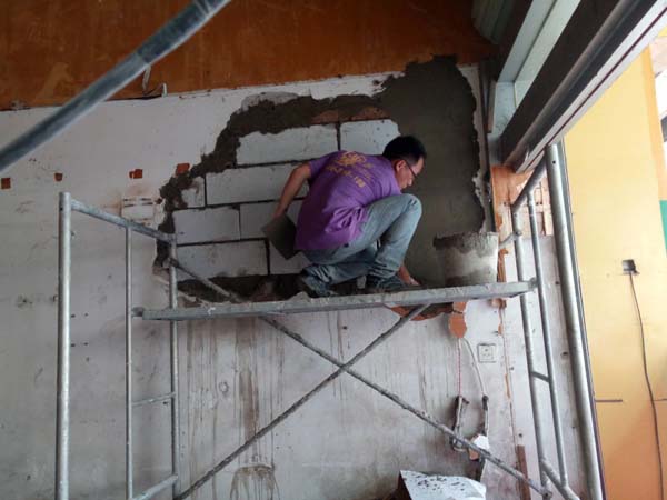 墻面洞口修補中
